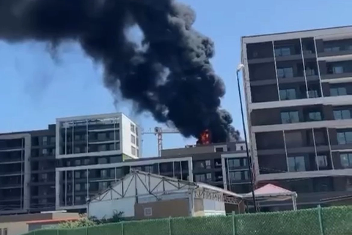 Nilüfer ilçesi Ahmet Yesevi Mahallesi'ndeki 8 katlı inşaatın çatısında saat 11.30 sıralarında yangın çıktı.