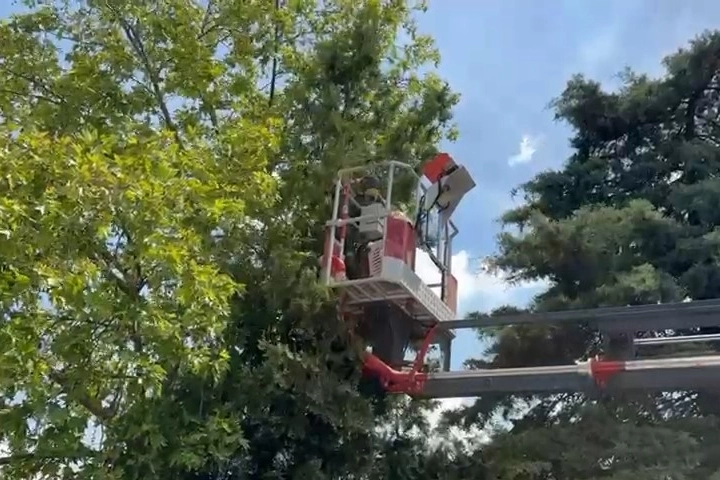 Ağaçta mahsur kalan kediler ekiplerin 5 dakika süren çalışmalarıyla kurtarıldı.