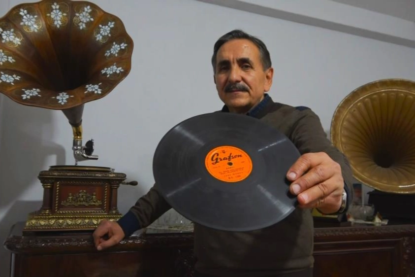 Yaklaşık 12 yıl önce Bursa’ya taşınan Altınsoy, koleksiyonundaki taş plakları dinlemek üzere gramofon satın aldı.