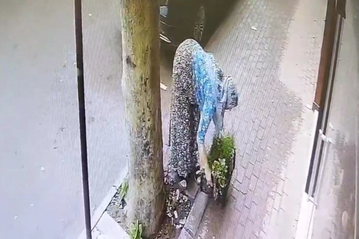 İş yeri önüne koyduğu çiçekleri bulamayan D.Ö., güvenlik kameralarını inceledi.