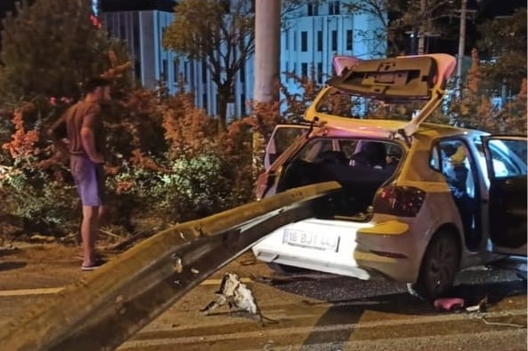 Şiddetli çarpmanın etkisiyle çıkan bariyer aracın motor kısmından girip bagaj kısmından dışarıya çıktı.