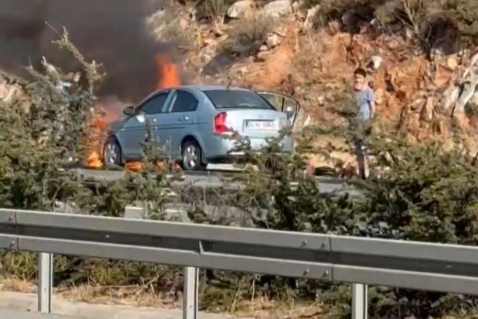 Alevler kısa sürede tüm aracı sararken, sürücü canını zor kurtardı.