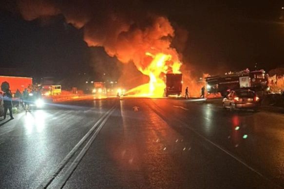Üzerinde çamaşır makinesi yüklü olduğu öğrenilen Murat Yamanarda (51) idaresindeki 55 AIY 740 tır, seyir halindeyken bir anda yanmaya başladı.