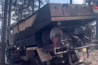Ekipler olay yerinden son anda kaçarak canını kurtarırken, kamyon bölgeyi saran alevler nedeniyle yanarak kullanılmaz hale geldi.