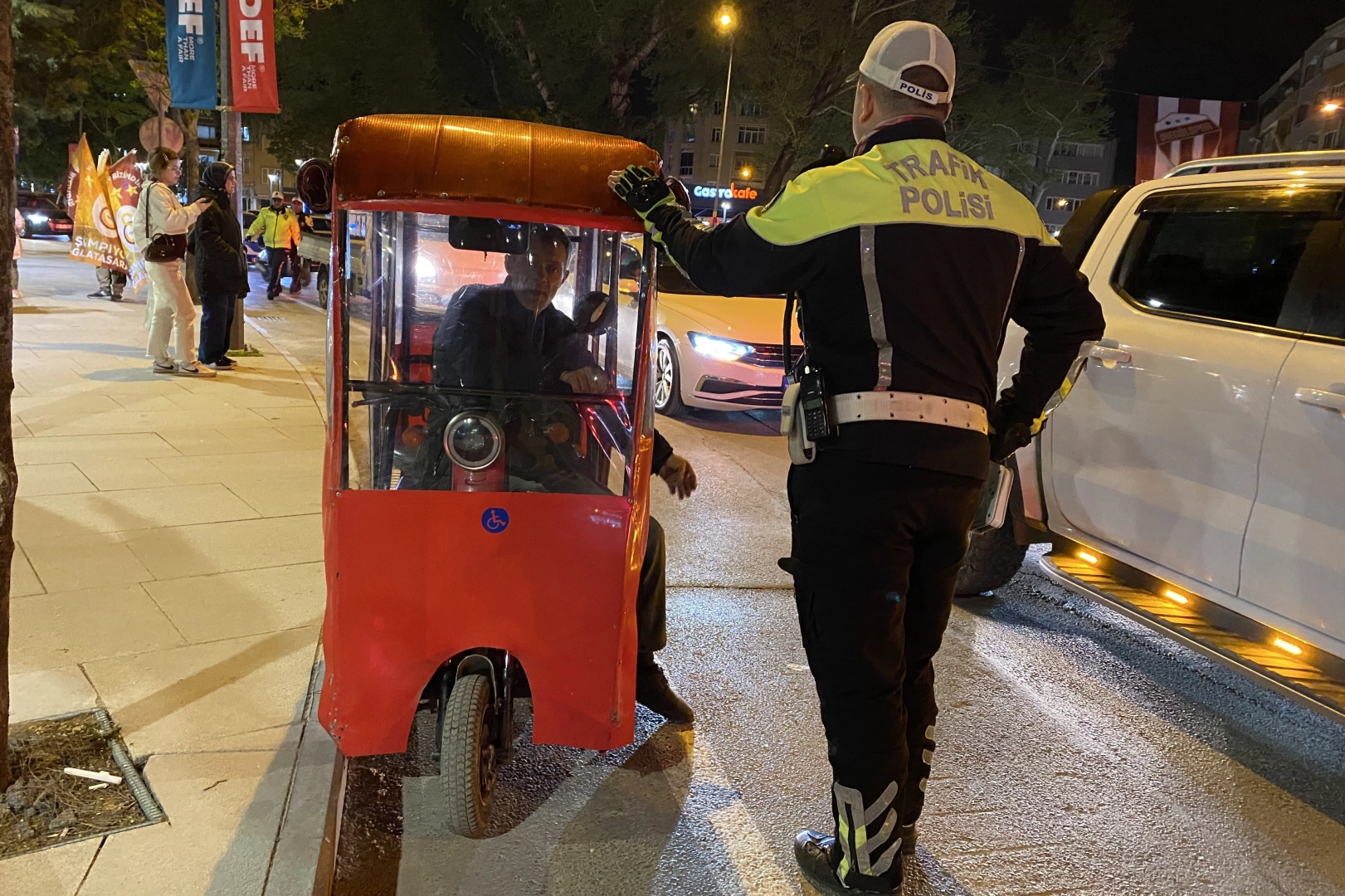 Maç sonrası taraftarlar araçlarıyla konvoy oluşturarak ilçe genelinde kutlama yaptı. Kutlamalar sırasında devriye gezen polis ekipleri, 16 BBR 066 plakalı triportörün trafikte kontrolsüz şekilde ilerlediğini fark etti.