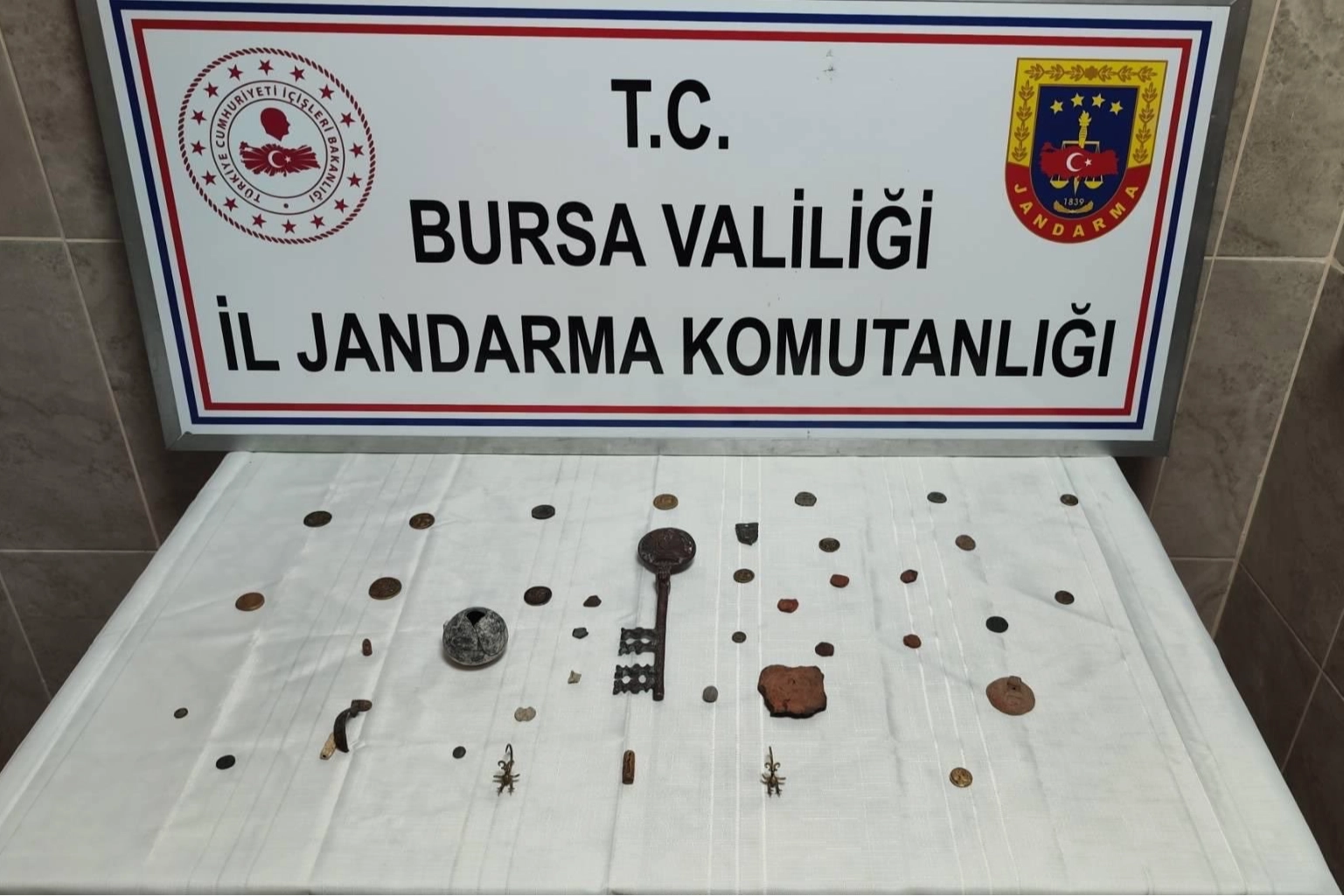 Nilüfer ilçesi Başköy Mahallesi’nde bir şahsın elindeki tarihi eserleri satmak istediği yönünde bilgi alınması üzerine, İl Jandarma Komutanlığı timlerince "Anadolu Mirası Operasyonları" kapsamında operasyon düzenlendi.