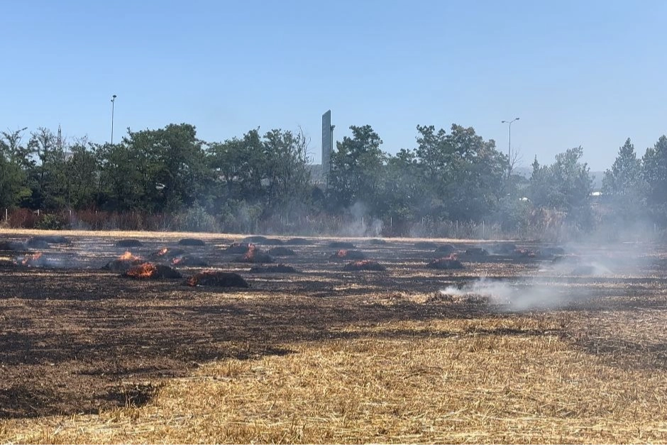 Yakılan anızlardan yükselen alevler, rüzgarın da etkisi ile kısa sürede büyüyerek geniş bir alana yayıldı.
