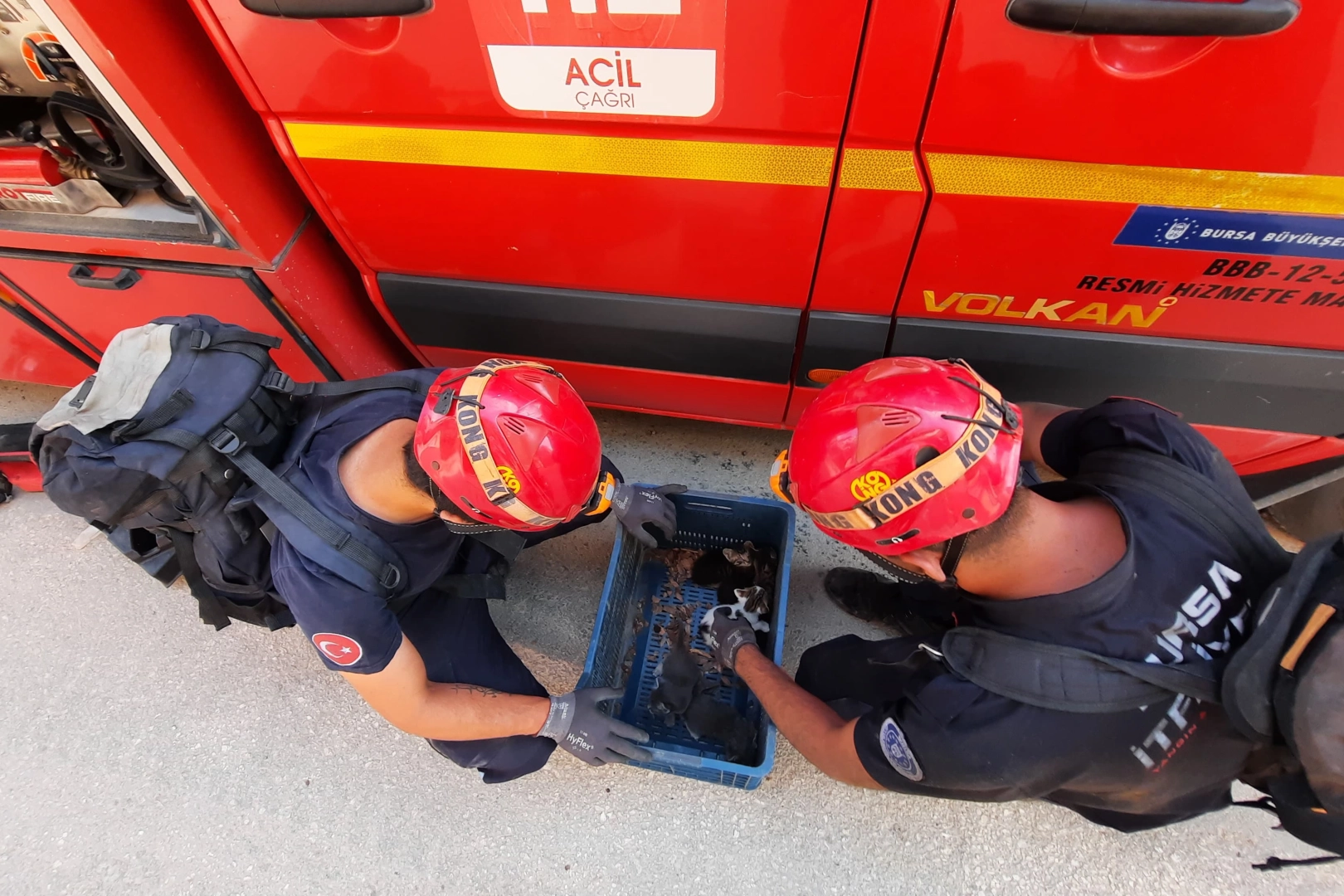 Apartmana gelen itfaiye ekipleri, havalandırma boşluğunda kedi yavrularının olduğunu belirledi.