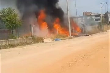 Yangın, saat 12.00 sıralarında Huzur Mahallesi'nde faaliyet gösteren araç denetim istasyonu yanındaki boş alanda atıl olan plastik, karton ve BUSKİ'ye ait altyapı boruları malzemelerinde meydana geldi.