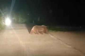Ayı ailesinin görüntülerini o sırada yoldan geçen bir otomobil sürücüsü cep telefonu ile kaydetti.