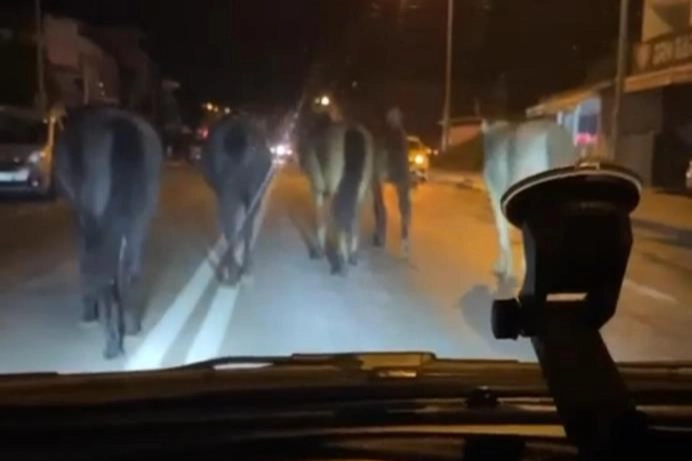 Dakikalarca sürü halinde ilerleyen atlar bazı sürücülere zor anlar yaşattı. Atların dakikalarca cadde üzerinde ilerlediği görülürken, bir süre sonra gözden kayboldu.