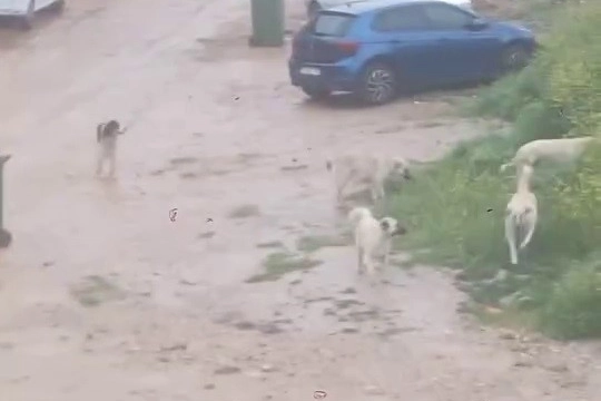Sürü halinde gezen başıboş sokak köpekleri, sokakta yürüyen çocuğa saldırdı.