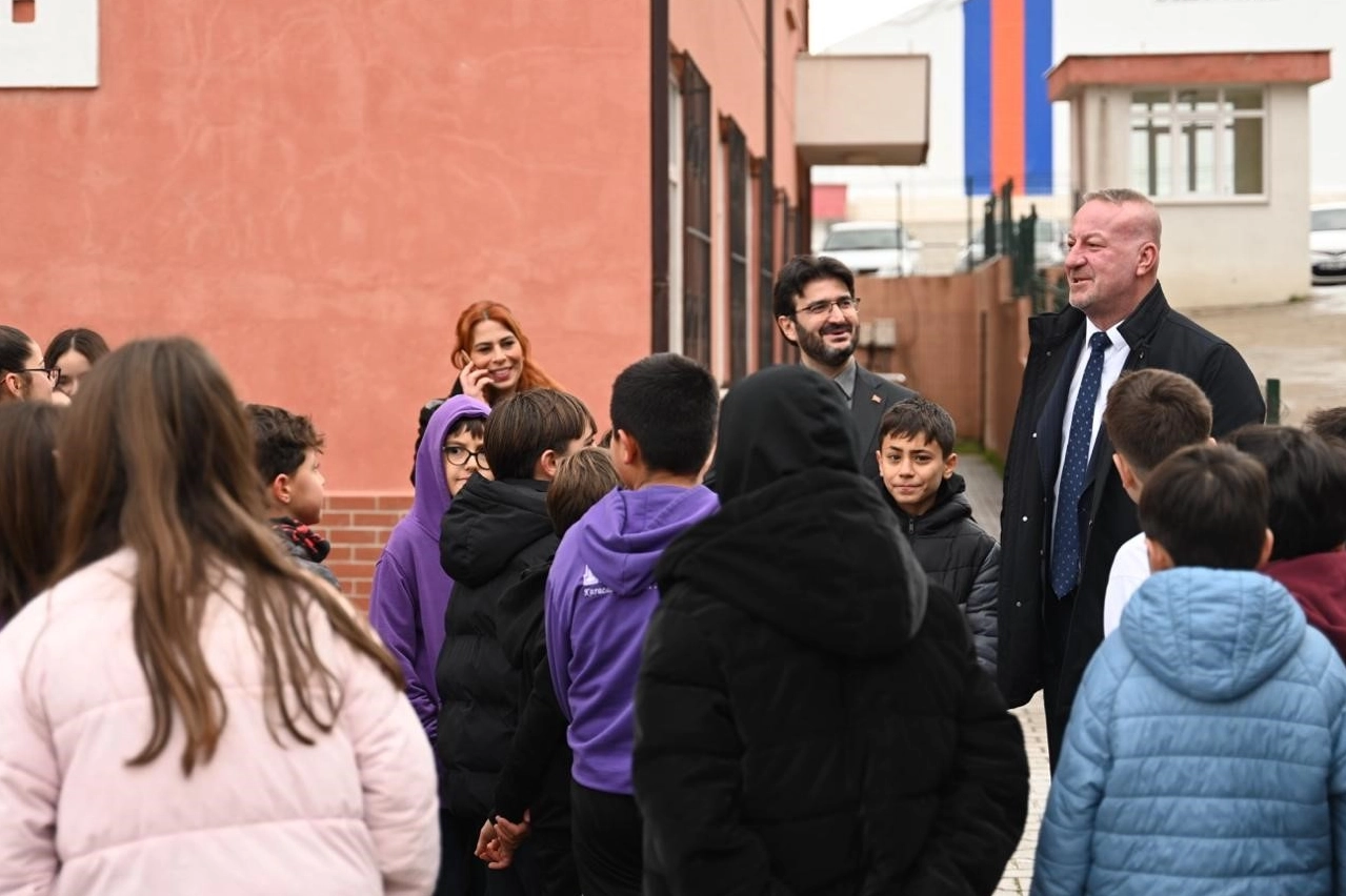 Başkan Karabatı'nın okul ziyaretinde; İlçe Milli Eğitim Müdürü Muhammet Ali Erbir, Okul Müdürü Aydın Yıldırım, Belediye Özel Kalem Müdürü Mehtap Önler, okul aile birliği yöneticileri, öğretmenler ve öğrenciler de hazır bulundu.