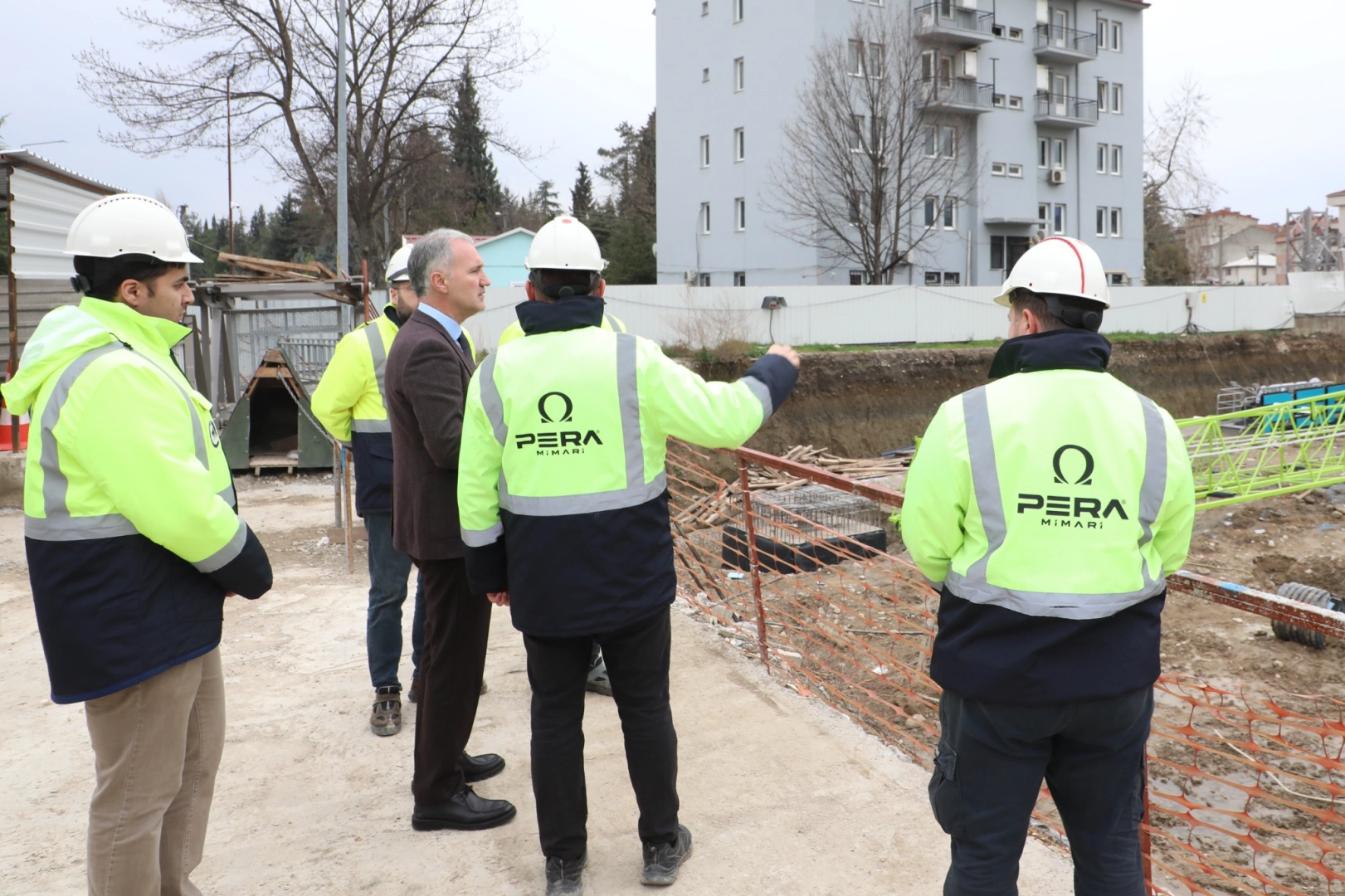 Turgutalp Mahallesi'nde inşaat çalışmalarının sürdüğünü belirten Yazlı, 2. ve 3. etaplarda yıkım faaliyetlerinin tamamlandığını, bölgede hafriyat ve zemin iyileştirme çalışmalarının devam ettiğini kaydetti.