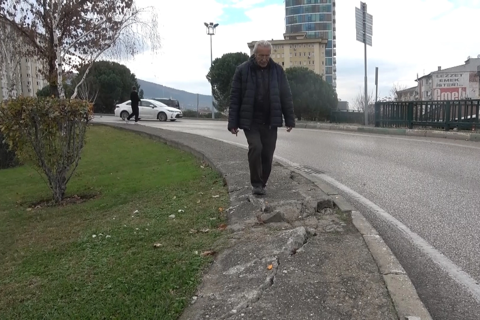 Emekli belediye sakini Kemal Şengırlı (74) "SGK binasının altındaki eski Gemlik yolundayız. 1 yıldır yolun yapılması için dilekçeler verdik ve yetkililerle görüştük. Ancak bir türlü yaptıramadık. Kaldırımı binlerce insan kullanıyor. Burada bir bayan gözümün önünde düştü. Trafik levhalarının sökülmesi sonrası kalan demirler büyük tehlike arz ediyor" dedi.