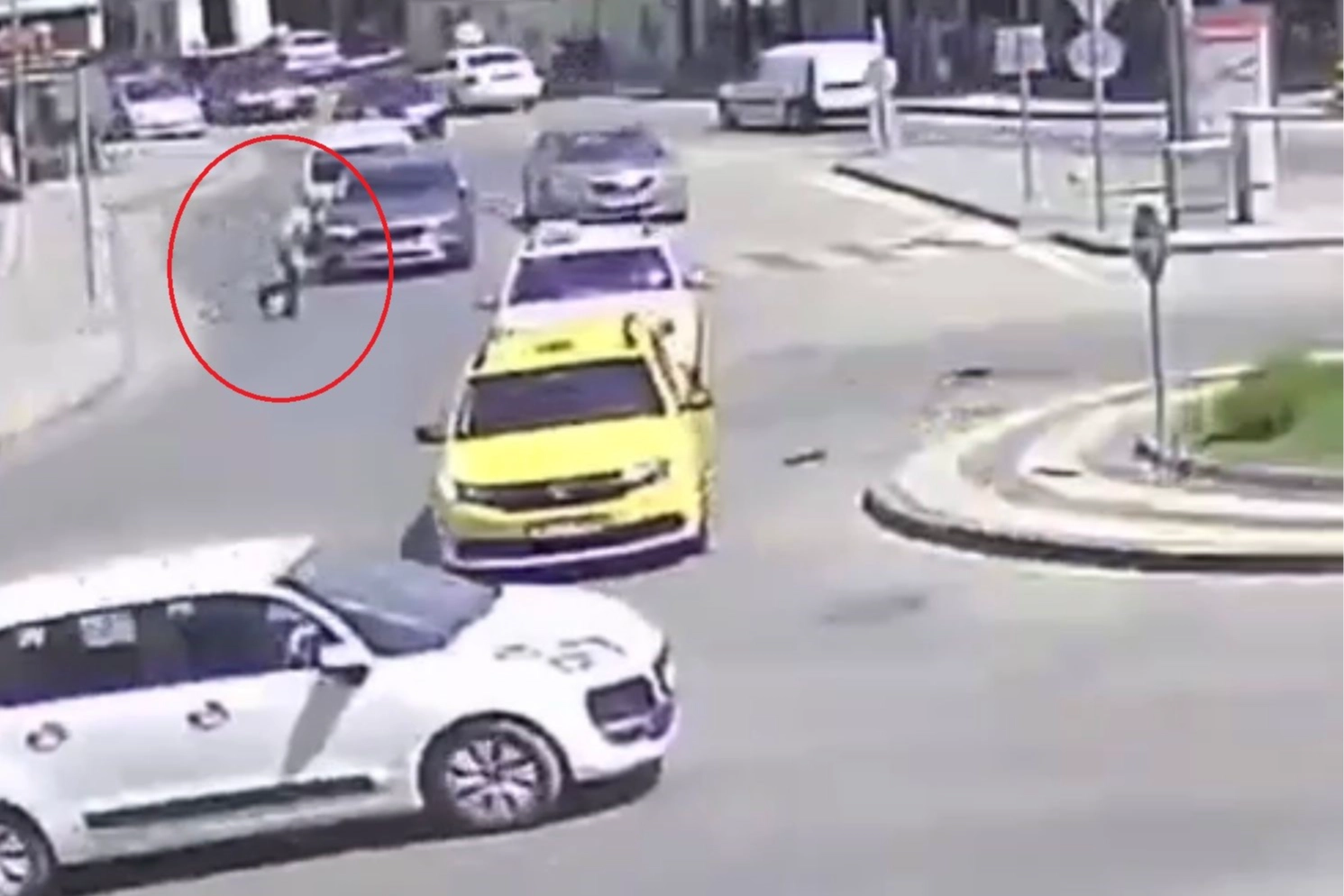 Görenleri hayrete düşüren kaza anı çevredeki bir iş yerinin güvenlik kamerasına saniye saniye yansıdı.