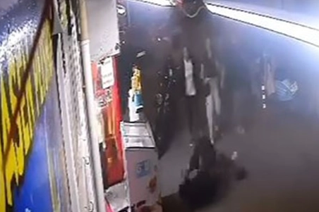 Motosikletli bir gencin ise kavgadaki bıçağı tekmesiyle uzaklaştırması dikkat çekti.
