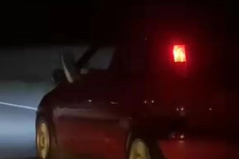 Görüntülerde, otomobilin yüksek hızla ilerlediği ve sürücünün rahat tavırlarla yolculuğuna devam ettiği görülüyor.