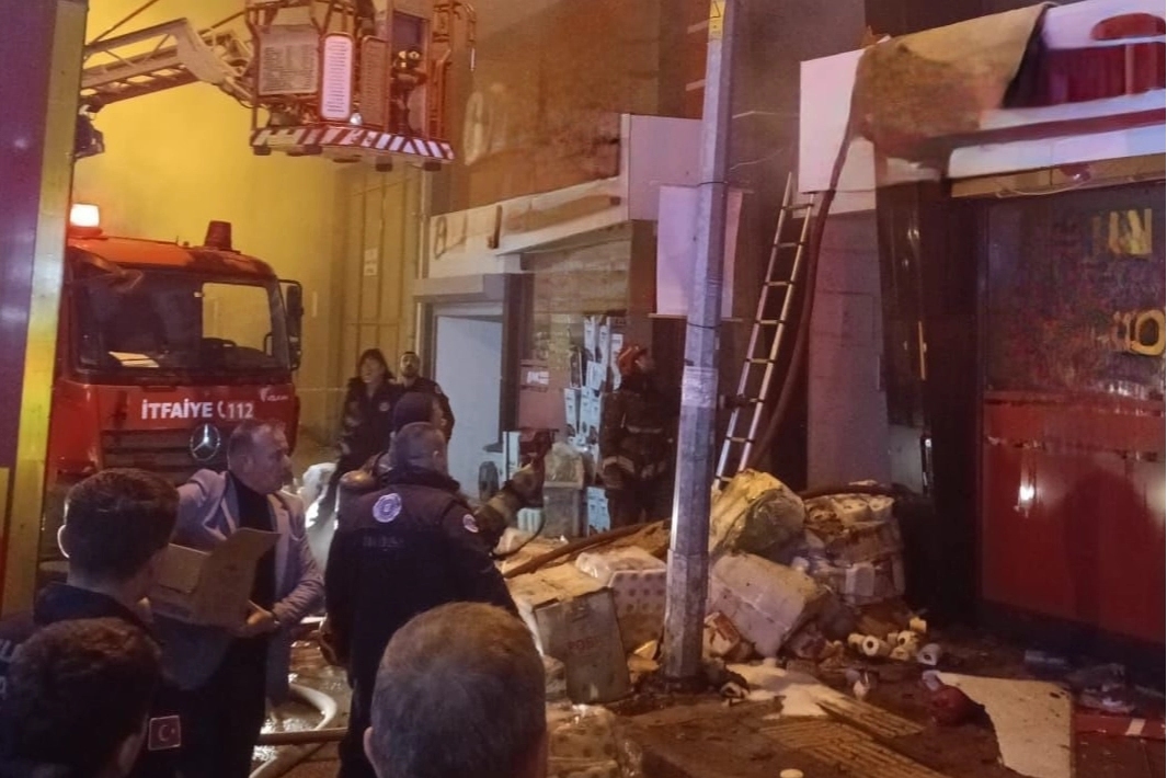 Bursa'da bir markette çıkan yangında hasar oluştu.