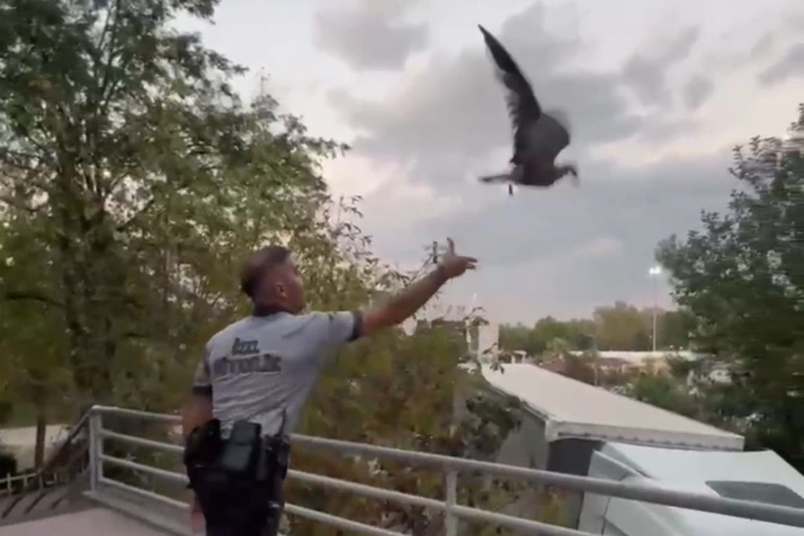 Yaşanan renkli anlar, vatandaşların yüzünü güldürürken martı, güvenlik görevlisinin ellerinden yeniden özgürlüğe kanat çırptı.
