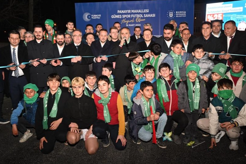 Gençlere sporu sevdirmek, daha sağlıklı ortamlarda spor yapmalarına imkan sağlamak amacıyla Osmangazi ilçesi Panayır Mahallesi’nde kazandırılan Güneş Spor Futbol Sahası, düzenlenen törenle hizmete açıldı.