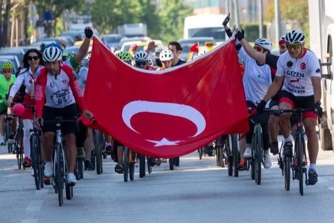 FSM Müzik Parkı’ndan başlayan etkinlikte, onlarca bisikletli, Türk bayrağını Mudanya’ya kadar taşıyarak gençlik ruhunu pedallarıyla yansıttı.