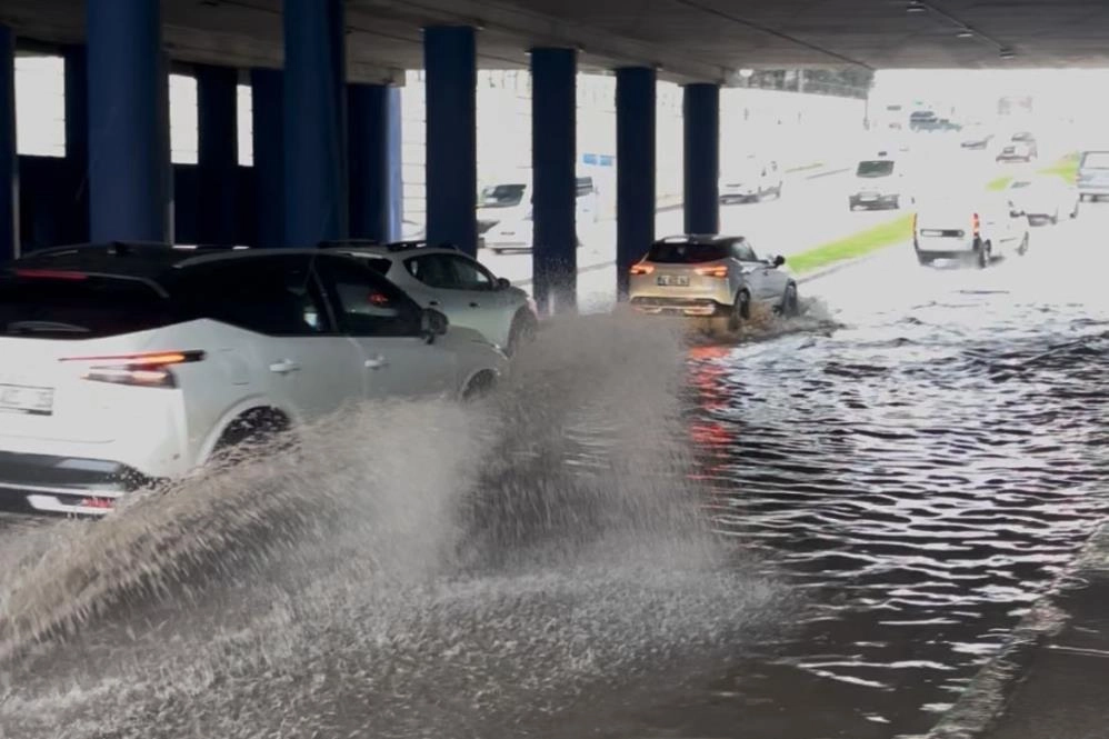 Yoğun yağışın ardından alt geçitte biriken sular, zaman zaman araç trafiğinin yoğun olduğu kavşakta ulaşımı olumsuz etkiledi.