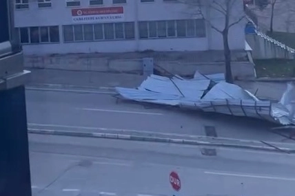 Bursa’nın Kestel ilçesine bağlı Vani Mehmet Mahallesi’nde bulunan bir caminin çatısı, etkili olan rüzgâr nedeniyle yerinden koparak yola düştü. Olay, çevrede kısa süreli paniğe neden oldu.