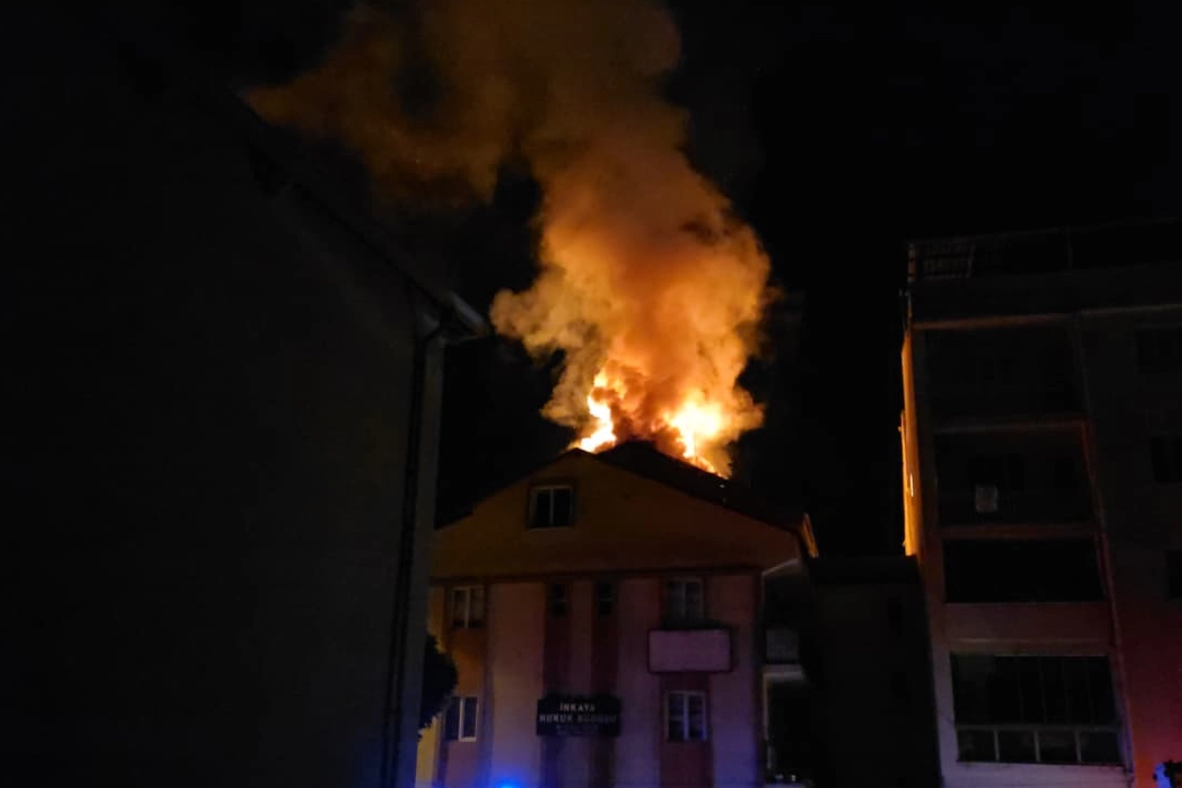 İtfaiye ekiplerinin müdahalesiyle yangın, çevredeki binalara sıçramadan söndürüldü.
