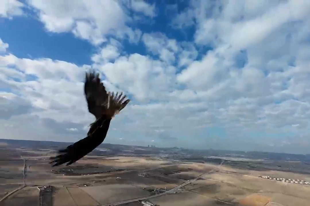 Meraklı şahin, uzun süre dronun etrafında döndü.