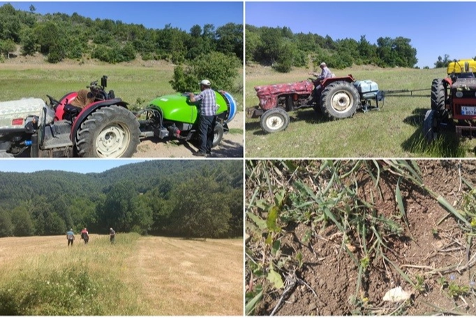 Bursa’nın İznik, Keles, Osmangazi ve Yenişehir İlçesinde bulunan garsiyat alanlarında '2025 Bitki Sağlığı Uygulama Programı' çerçevesinde çekirge mücadelesi yapılıyor.
