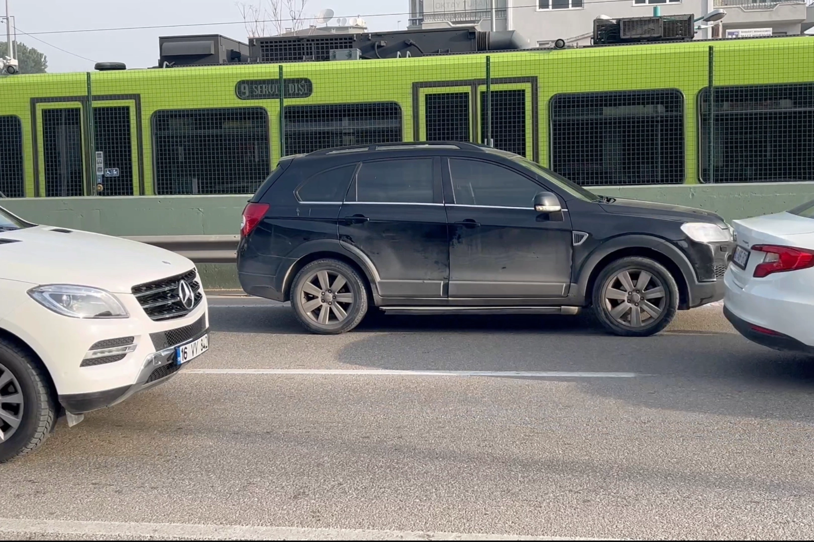 Yoldan geçen bazı sürücüler, sol şeritte aniden karşılarına çıkan araç nedeniyle yavaşlamak zorunda kalırken, trafikte kısa süreli karmaşa yaşandı.