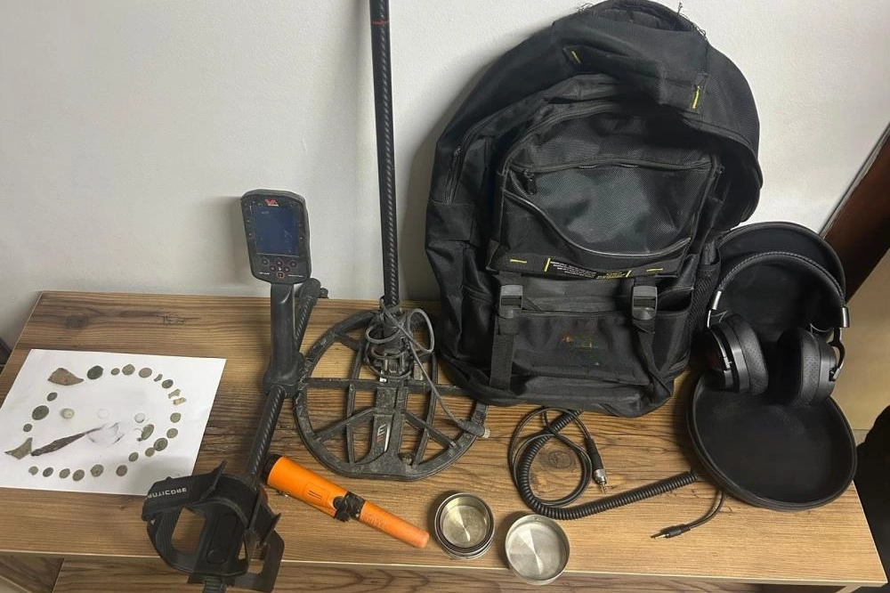 Ayrıca aracın bagajında dedektör gibi tarihi eser aramak için kullanılan araçlar bulundu.