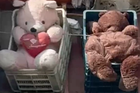 Bayramda da İnegöl ilçesinin temizliğine önem veren temizlik görevlileri, çöp toplamaya devam ediyorlar. Çöp kovalarındaki çöpleri kamyonun arkasına atan görevliler, çöpe atılan iki oyuncak ayıyı kamyonun içine atmaya kıyamayınca ortaya güzel görüntüler çıktı. Görevliler ayıları kamyonun arkasına astılar. O anlar, Ortaköy Mahallesi'nde bir sürücünün amatör kamerasına yansıdı.