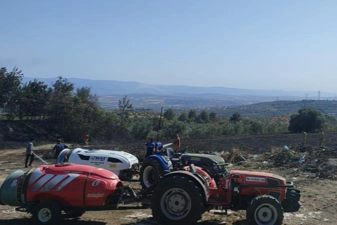 Çöplükten dumanların yükseldiğini fark eden mahalleliler, traktörlerin arkasına bağladıkları su tanklarıyla yangına müdahale ederek yangının yayılmasını önledi.