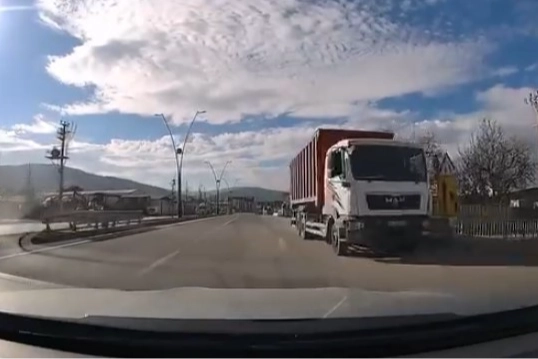 Ters şeritten son sürat ilerleyen bir kamyon, başka bir aracın araç kamerası tarafından saniye saniye görüntülendi.