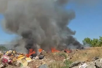 Orhangazi ilçesi İznik Gölü Sahili'nde Orhangazi Belediyesi tarafından katı atık deposu olarak kullanılan alanda, saat 12.00 sıralarında yangın çıktı.