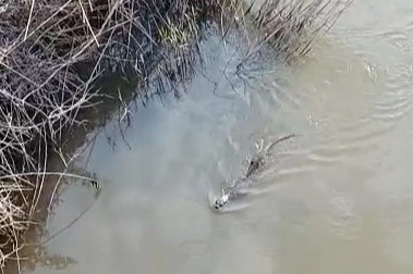 Bursa'nın Karacabey ilçesine bağlı Akçasusurluk mevkiinde bulunan derede su samuru görüntülendi.
