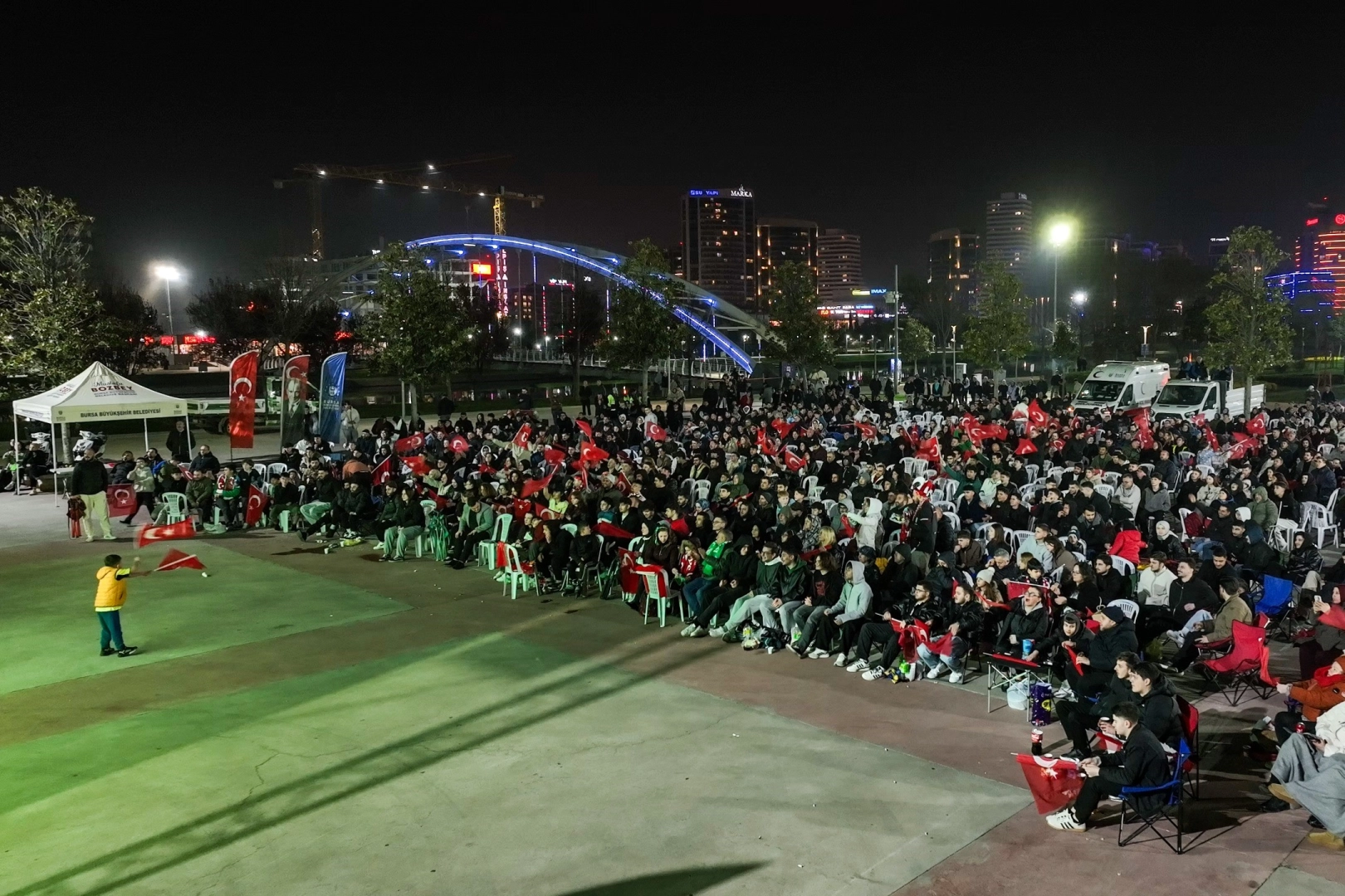 Bursa Büyükşehir Belediyesi, A Milli Futbol Takımı’nın Dünya Kupası Play-Off Yarı Final eşleşmesinde Romanya ile oynadığı karşılaşmayı Hüdavendigar Kent Parkı ve Görükle Gençlik Merkezi’nde kurduğu dev ekranlarda Bursalılarla buluşturdu. Yüzlerce kişi, ellerinde Türk bayraklarıyla maçı büyük bir coşkuyla takip etti.