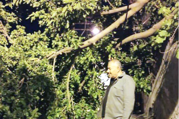 Elektrik tellerini de koparan ağacı yoldan kaldırmak için Muhtar Vezir Sağlam, Mudanya Emniyeti ve Bursa İtfaiyesi seferber oldu.