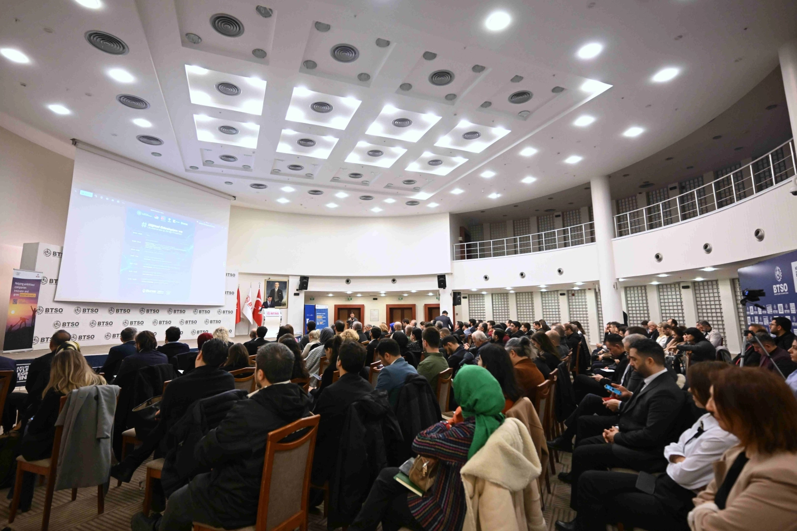 Bursa iş dünyasının dijital dönüşüm süreçlerine katkı sağlamak, KOBİ’lerin ulusal ve uluslararası destek mekanizmalarına erişimini artırmak ve yeni iş birliklerinin geliştirilmesine zemin hazırlamak amacıyla ‘Dijital Dönüşüm ve Uluslararası İş Birliği Fırsatları’ etkinliği BTSO Ana Hizmet Binası’nda düzenlendi. Avrupa İşletmeler Ağı kapsamında organize edilen; BTSO Meclis Başkan Yardımcısı Metin Şenyurt, KOSGEB Başkanı Ahmet Serdar İbrahimcioğlu ve Sanayi ve Teknoloji Bakanlığı AB ve Dış İlişkiler Genel Müdürü Ahmet Halit Hatip’in açılış konuşmalarıyla başlayan program kapsamında Sanayi ve Teknoloji Bakanlığı, TÜBİTAK ve KOSGEB temsilcileri tarafından Dijital Avrupa Programı, Avrupa Dijital İnovasyon Merkezleri, Avrupa İşletmeler Ağı, EuroHPC çağrıları, Ufuk Avrupa Programı ve ulusal dijital dönüşüm destekleri gibi önemli başlıklarda bilgilendirme sunumları yapıldı.