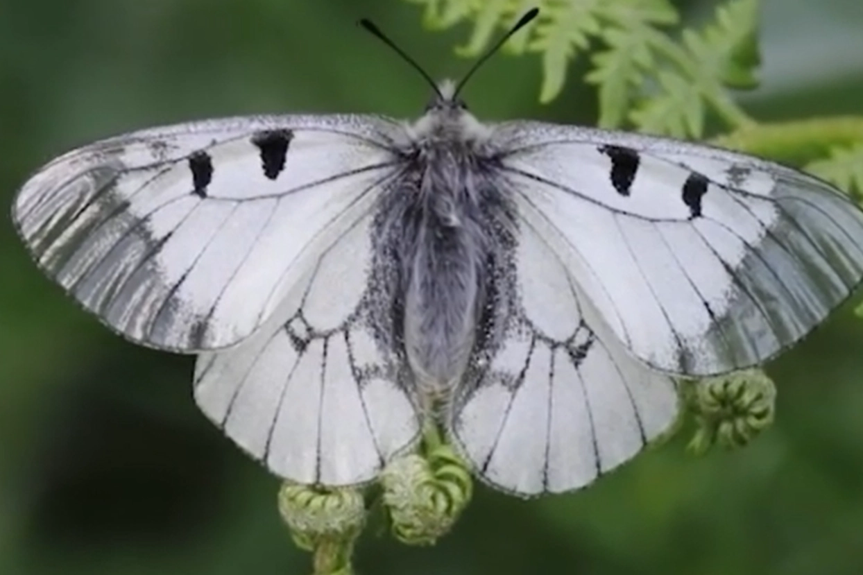 Palearktik bölgede bulunan kırlangıç kelebekleri ailesinin bir kelebek türü olan Dumanlı Apollo, beyaz büyük kanatları üzerindeki siyah desenleriyle dikkat çekiyor.
