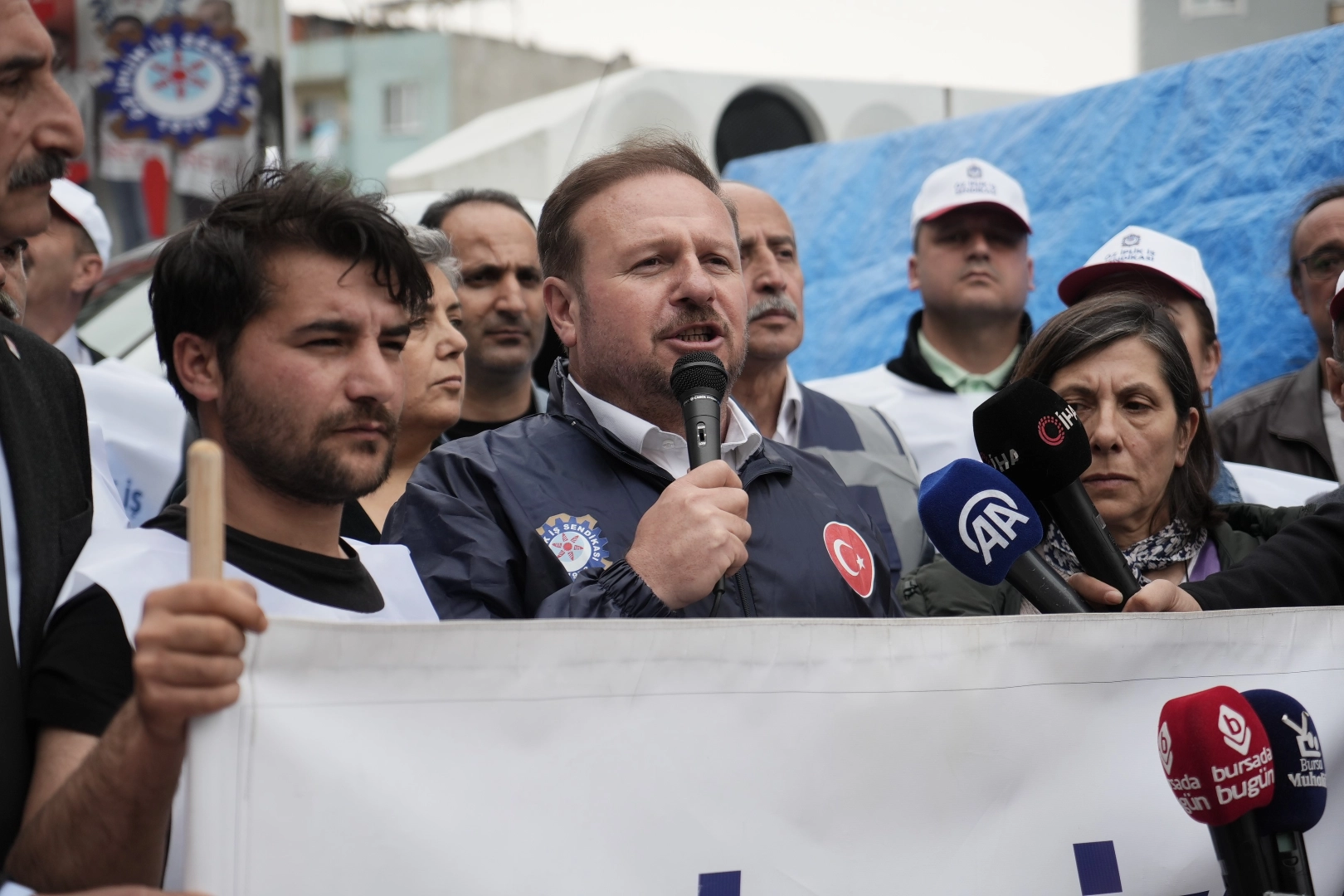 Bursa’da Durak Tekstil işçileri yaklaşık 8 ay önce Öz İplik İş Sendikası’na üye olmaya başladı. İşveren tarafından sendikaya üye olmamaları konusunda baskı gören işçiler daha sonra da işten çıkarıldı. İşten çıkarılan 6 işçi ve sendika üyeleri, fabrika kapısı önünde greve başladı. Yaklaşık 83 gündür grevde olan işçilere Öz İplik İş Sendikası fabrika önünde basın açıklaması yaparak desteğini dile getirdi. “Çalışanların, sendikaya üye olma özgürlüğüne saygı gösterilmeli”
