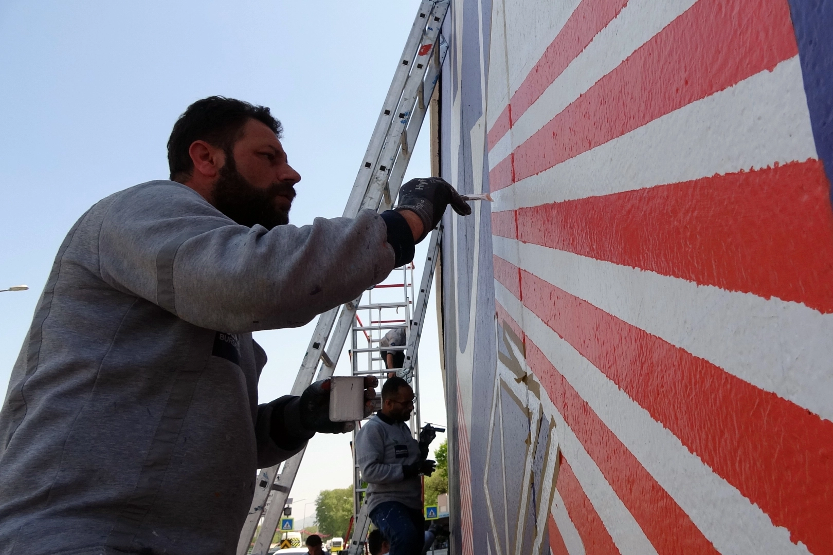 "Bursa’ya ait doğal, tarihi ve kültürel güzelliklerin ön plana çıkarıldığı, soyut bir duvar çalışması gerçekleştiriyoruz. Kamusal alandaki estetik çalışmaların en önemli özelliği, çok daha fazla insana kısa sürede ulaşması. Kentimizin önemli bir noktasında, ciddi geçiş yoğunluğu olan bir bölgede gerçekleştirdiğimiz bu çalışmada, Bursa’ya ait önemli figürleri duvarımıza taşıdık. Atatürk Heykeli, Bursa’nın tarihi belediye binası, Tayyare Kültür Merkezi, Irgandı Köprüsü, İznik’in Bazilikası, Baba Sultan Türbesi, Eski Karaağaç, Gölyazı, Cumalıkızık, UNESCO alanlarımız, Karagöz ve Hacivat gibi Bursa ile özdeşleşmiş pek çok öğe duvara işlendi. Çalışmanın tasarımı sanatçı Tuba Okat’a ait. Uygulaması ise şube müdürlüğümüzün çalışanları tarafından yapılıyor. 5 kişilik boyama ekibimiz ve 4 ressam arkadaşımız yaklaşık 1 aydır alandaki çalışmalarını sürdürüyor.”