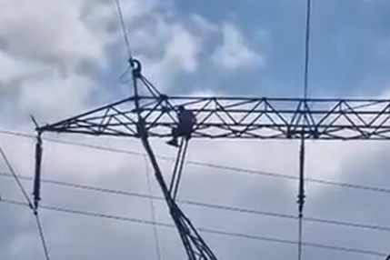 Şahıs, direğin tepesinde çevredekilere seslenerek eşinden ayrıldığını belirtirken aynı zamanda “Gazze yalnız değil!”, “Filistin halkı için adalet!” şeklinde sloganlar atıyor.