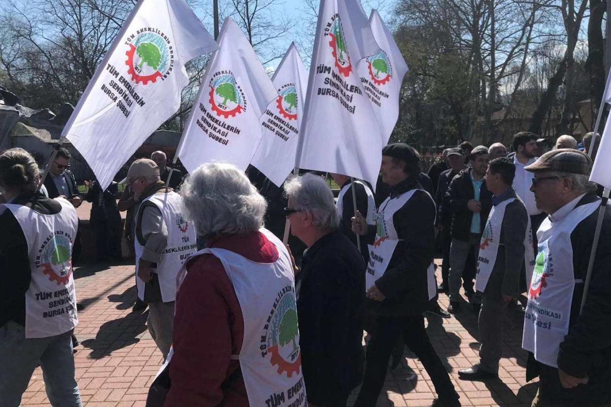 Tüm Emeklilerin Sendikası Bursa Şubesi "Emeklilerin kaderi ucuz gıda kuyruğu mu?" konulu basın açıklamasını Atatürk Anıtı önünde gerçekleştirdi.