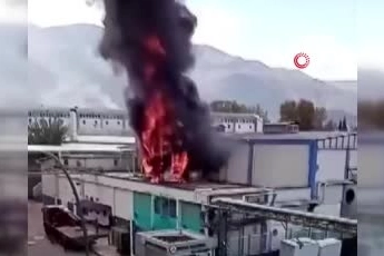 Yangın sırasında fabrikanın bir bölümü alev alev yandı, yükselen alevler çevrede korku dolu anlar yaşattı.