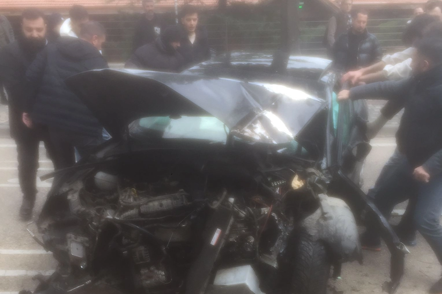 Kazada sürücünün kullandığı otomobil ise paramparça oldu.