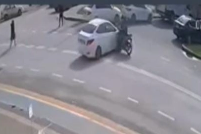 Motosiklet, otomobilin sağ ön kapısına çarptıktan sonra hızın etkisiyle aracın üzerinden savrularak yere