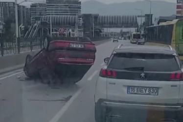 Olay Osmangazi ilçesindeki İstanbul Caddesi'nde meydana geldi. Kent Meydanı istikametinde meydana gelen kazada 16 ATC 778 plakalı araç takla atarak ters döndü.